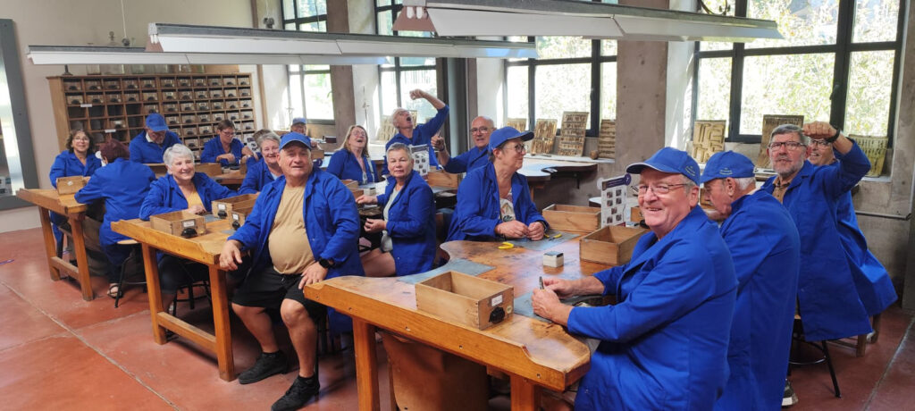 l’atelier des bijoux à Saint Martin de Valamas, tous en blouse devant les